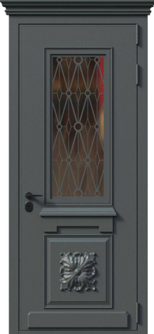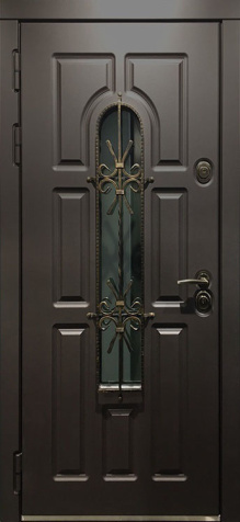 Входная дверь в частный дом со стеклом и ковкой №23