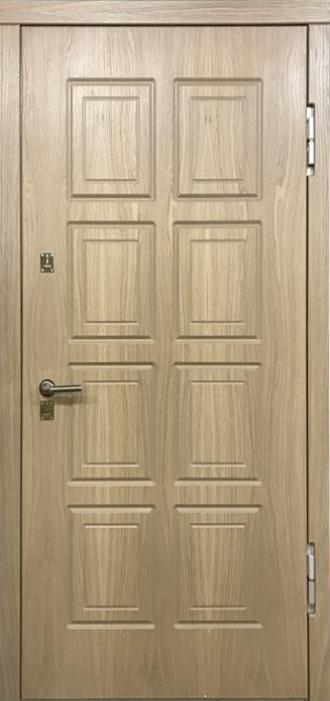 Дверь входная в частный дом №44 сочетает в себе надёжность стальной основы и практичность декоративной отделки. Каркас и полотно из профильной трубы с листом металла толщиной 2 мм обеспечивают устойчивость к нагрузкам, а рёбра жёсткости повышают общую прочность конструкции. В коробке и полотне предусмотрен терморазрыв, который предотвращает промерзание и помогает сохранять тепло внутри помещения, что особенно важно для частных домов и коттеджей. Снаружи и внутри дверь облицована МДФ-накладками, материалом, устойчивым к мелким повреждениям и удобным в уходе, благодаря чему изделие долго сохраняет презентабельный вид. Двойной контур уплотнителей блокирует сквозняки и влагу, создавая дополнительный комфорт. Для безопасности установлены два замка — сувальдный Просам и цилиндровый Мосрентген, оба с трёхригельной системой. Модель легко адаптируется под пожелания заказчика: можно изменить отделку или добавить декоративные элементы, превращая дверь в индивидуальное решение для дома, офиса или квартиры. Дверь входная в частный дом №44 от производителя: быстрое изготовление и монтаж в Хотьково, индивидуальные размеры, широкий выбор материалов и фурнитуры, официальная гарантия до 10 лет.