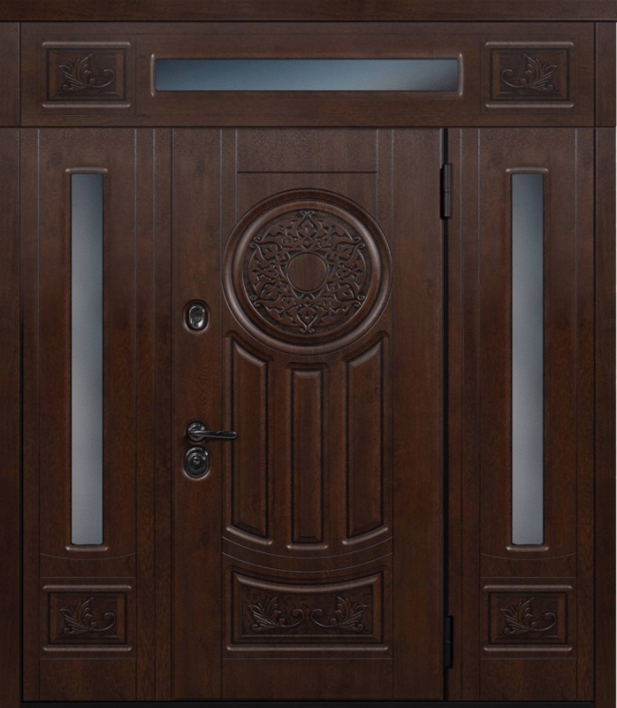 Эта нестандартная парадная дверь с фрамугой №6 — отличный выбор для тех, кто ценит элегантность и долговечность. Внешняя и внутренняя отделка из МДФ придает дверям стильный и современный вид, а также защиту от механических повреждений. МДФ устойчива к царапинам и вмятинам, что делает дверь идеальной для долгосрочной эксплуатации. Каркас из профильной трубы 50х25 мм и лист металла толщиной 2 мм обеспечивают прочность и надежность, а ребра жесткости из профильных труб гарантируют дополнительную устойчивость. В двери установлены блокираторы, два контура уплотнителей из резины, что повышает звуко- и теплоизоляцию. Замки от известных производителей, таких как Просам и Мосрентген, обеспечат надежную защиту. Возможность комбинировать отделку, добавлять зеркало, стеклопакет или кованые элементы позволяет легко адаптировать дверь под любые предпочтения. Нестандартная парадная дверь с фрамугой №6 от производителя: быстрое изготовление и монтаж в Хотьково, индивидуальные размеры, широкий выбор материалов и фурнитуры, официальная гарантия до 10 лет.