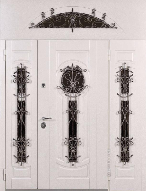 Входная дверь с кованой ручкой и фрамугой №6 представляет собой элегантное и надежное решение для тех, кто ценит не только безопасность, но и стиль. Эта модель идеально подойдет для оформления парадных входов в дома и офисы. Внешняя отделка из плиты МДФ придает двери современный и чистый вид, который сохраняется долго благодаря стойкости к внешним воздействиям. Благодаря профильной трубе с толщиной металла 2 мм и ребрам жесткости, конструкция двери гарантирует прочность и долговечность. Дополнительный элемент — кованая ручка, которая добавляет изысканности и подчеркивает высокий класс изделия. Стандартная комплектация не включает шумо- и теплоизоляцию, однако она может быть установлена по желанию. Резиновый уплотнитель с двумя контурами обеспечит хорошую герметичность, защищая от ветра и пыли. Подходит для установки как в частных домах, так и в офисах, привлекая внимание своим необычным и стильным дизайном. Входная дверь с кованой ручкой и фрамугой №6 от производителя: быстрое изготовление и монтаж в Хотьково, индивидуальные размеры, широкий выбор материалов и фурнитуры, официальная гарантия до 10 лет.