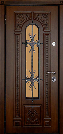 Металлическая дверь со стеклом и кованой решеткой №13 — это решение для тех, кто хочет совместить надежность и декоративную выразительность. Прочная конструкция из профильной трубы и стального листа толщиной 2 мм гарантирует устойчивость к нагрузкам, а ковка со стеклянными вставками делает вход более светлым и при этом надежно защищенным. Плита МДФ, используемая в отделке с обеих сторон, отличается долговечностью, стойкостью к царапинам и перепадам температуры, сохраняя аккуратный внешний вид на долгие годы. Два контура уплотнения и резиновая прокладка защищают от сквозняков и влаги, повышая комфорт в доме. Возможность выбора размеров и вариантов отделки позволяет создать дверь, полностью соответствующую архитектуре коттеджа или загородного дома. Металлическая дверь со стеклом и кованой решеткой №13 сочетает функциональность, эстетичность и индивидуальный характер, подчеркивая престиж жилища. Металлическая дверь со стеклом и кованой решеткой №13 от производителя: быстрое изготовление и монтаж в Хотьково, индивидуальные размеры, широкий выбор материалов и фурнитуры, официальная гарантия до 10 лет.