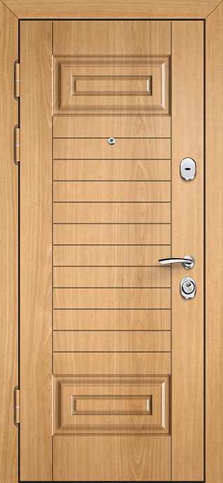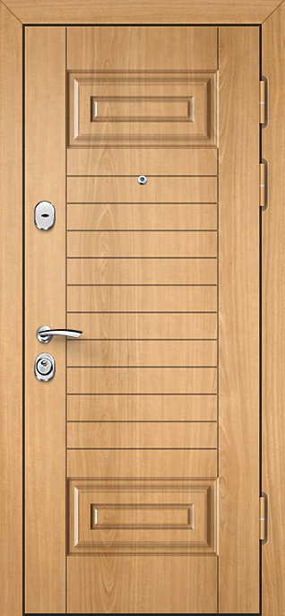 Металлическая конструкция с листом стали толщиной 2 мм и жёстким каркасом из профильной трубы формирует основу, которая не подведёт ни в квартире, ни в офисе. Два контура резинового уплотнителя делают закрывание плотным, уменьшая шум и сквозняки, а наличие блокираторов повышает уровень безопасности. Внешняя и внутренняя отделка выполнена из МДФ ПВХ — материал прочный, устойчивый к мелким повреждениям и сохраняющий аккуратный вид при ежедневной эксплуатации. В центре внимания здесь Железная дверь в квартиру №78, сочетающая надёжность стали и декоративные возможности панелей, которые можно комбинировать по вкусу. Комплект замков представлен сувальдным Просам и цилиндровым Мосрентген, при этом доступна замена на более сложные механизмы вплоть до биометрических систем. Конструкцию легко дополнить зеркалом, стеклопакетом, коваными элементами или видеодомофоном, превратив строгую дверь в удобный и технологичный элемент современного жилья. Железная дверь в квартиру №78 от производителя: быстрое изготовление и монтаж в Хотьково, индивидуальные размеры, широкий выбор материалов и фурнитуры, официальная гарантия до 10 лет.