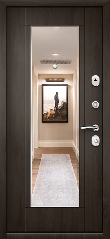 Для тех, кто ценит не только надёжность, но и практичность, металлическая входная дверь с зеркалом становится отличным решением. Она органично впишется как в частный дом, так и в квартиру или офис, позволяя сэкономить пространство и добавить функциональности интерьеру. В основе конструкции — прочный каркас из профильной трубы и стальной лист толщиной 2 мм, что обеспечивает серьёзную защиту от взлома и долговечность эксплуатации. Наружное покрытие выполнено методом порошкового термонапыления, устойчивого к механическим повреждениям и погодным условиям, а изнутри используется МДФ с ПВХ-плёнкой, сохраняющей привлекательный вид долгие годы. Железная дверь входная с зеркалом №75 дополнена двумя замками российского производства — сувальдным и цилиндровым, что повышает уровень безопасности. Возможность менять отделку, устанавливать умные замки или видеодомофон делает модель универсальной и адаптируемой под любые запросы. Железная дверь входная с зеркалом №75 от производителя: быстрое изготовление и монтаж в Хотьково, индивидуальные размеры, широкий выбор материалов и фурнитуры, официальная гарантия до 10 лет.