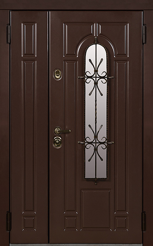 Эта металлическая двухстворчатая дверь с арочным стеклопакетом №15 представляет собой идеальный баланс между эстетикой и прочностью. Арочное стекло добавляет в её дизайн утончённость, а ковка в декоре придаёт изысканный, но в то же время крепкий и надёжный вид. Плита МДФ, используемая как для внешней, так и для внутренней отделки, не только сохраняет прекрасный внешний вид, но и устойчива к механическим повреждениям. Металлическая двухстворчатая дверь с арочным стеклопакетом №15 от производителя: быстрое изготовление и монтаж в Хотьково, индивидуальные размеры, широкий выбор материалов и фурнитуры, официальная гарантия до 10 лет.