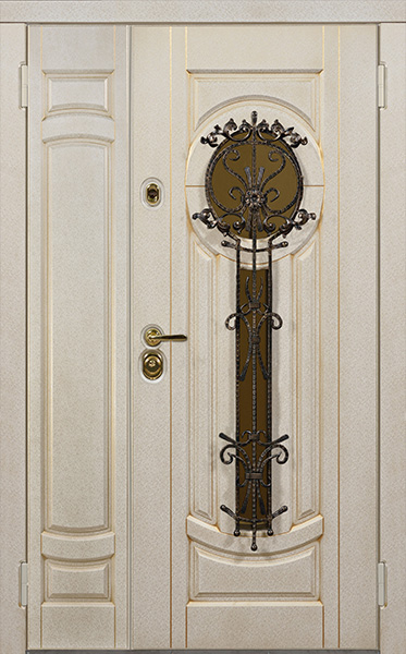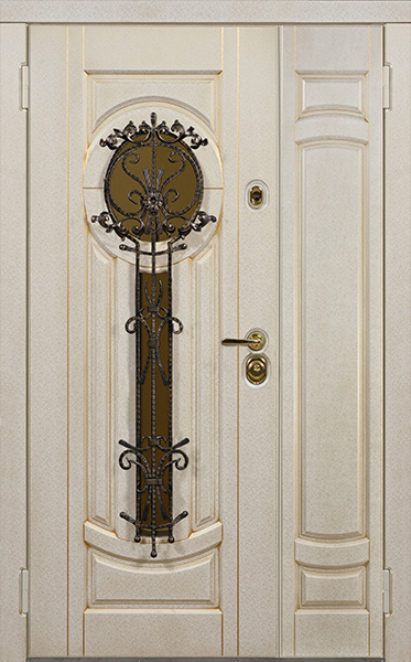 Двухстворчатая парадная дверь с ковкой и стеклом белая №30 — это сочетание красоты и надёжности. Конструкция из профильной трубы 50х25 мм и металлического листа толщиной 2 мм обеспечивает долговечность и стойкость к внешним воздействиям. Элементы ковки придают двери изысканный вид, а стеклопакет позволяет создать атмосферу лёгкости и прозрачности. Внешняя и внутренняя отделка выполнены из плиты МДФ, что делает дверь не только привлекательной, но и устойчивой к механическим повреждениям. Для дополнительной герметичности используются уплотнители с двумя контурами, а блокираторы обеспечат безопасность. Вариативность размеров и возможность добавления дополнительных опций, таких как шумо- и теплоизоляция, делают эту модель универсальной для установки в любом интерьере. Двухстворчатая парадная дверь с ковкой и стеклом белая №30 от производителя: быстрое изготовление и монтаж в Хотьково, индивидуальные размеры, широкий выбор материалов и фурнитуры, официальная гарантия до 10 лет.
