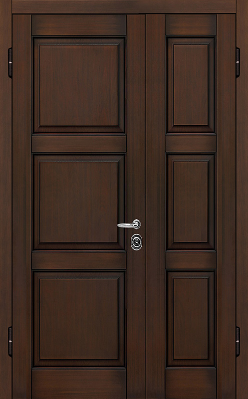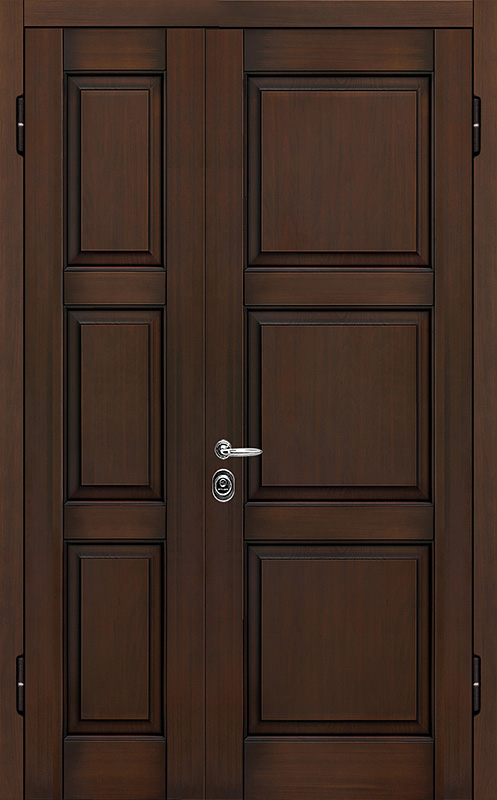 Двойная филенчатая дверь для загородного дома венге №7 сочетает в себе элегантность и прочность. Ее внешняя отделка выполнена из панелей МДФ с ПВХ, что придает двери современный вид, а также обеспечивает устойчивость к механическим повреждениям и долговечность. Каркас из профильной трубы 50х25 мм и полотно толщиной 2 мм гарантируют надежность и устойчивость к нагрузкам. Ребра жесткости из профильных труб 40х25 мм усиливают конструкцию, а уплотнение с двумя контурами защищает от проникновения влаги и пыли. Замки "Просам" и "Мосрентген" с тремя ригелями обеспечивают высокий уровень безопасности. В дверь можно добавить дополнительные элементы, такие как стеклопакет, зеркало или кованые детали, что позволяет адаптировать ее под любой интерьер. Терморазрывы в коробке и полотне способствуют лучшей теплоизоляции, обеспечивая комфорт в любое время года. Двойная филенчатая дверь для загородного дома венге №7 от производителя: быстрое изготовление и монтаж в Хотьково, индивидуальные размеры, широкий выбор материалов и фурнитуры, официальная гарантия до 10 лет.