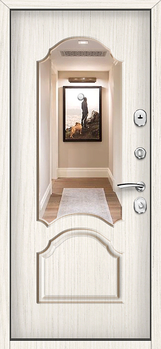 Входная дверь с зеркальной вставкой для прихожей №21 — это не просто надежное, но и стильное решение для частных домов, квартир и офисов. Благодаря прочному каркасу из профильной трубы 50х25 мм и металлическому полотну толщиной 2 мм, дверь гарантирует долговечность и высокую степень защиты. Внешняя отделка с порошковым напылением не только добавляет эстетичности, но и защищает от атмосферных воздействий, а внутренняя отделка из панелей МДФ ПВХ устойчива к механическим повреждениям. Вставка зеркала на двери добавляет современности и практичности, расширяя пространство прихожей. Два контура резинового уплотнителя эффективно предотвращают попадание холода и шума. Дверь оборудована двумя замками, что повышает безопасность. Также можно заменить замки на более современные модели и добавить опции, такие как стеклопакет или видеодомофон, что делает эту модель еще более универсальной. Входная дверь с зеркальной вставкой для прихожей №21 от производителя: быстрое изготовление и монтаж в Хотьково, индивидуальные размеры, широкий выбор материалов и фурнитуры, официальная гарантия до 10 лет.
