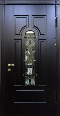 Большая выходная дверь со стеклом и ковкой №4