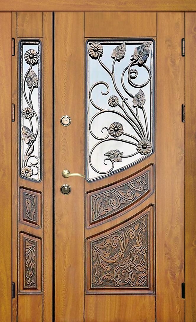 Дверь со стеклопакетом входная №411 создана для тех, кто ценит надежность и одновременно хочет подчеркнуть стиль фасада своего дома. Прочный стальной каркас из профильной трубы с листом металла толщиной 2 мм и системой ребер жесткости гарантирует долговечность и защиту от внешних воздействий. Панели из натурального дерева с обеих сторон придают полотну благородный облик, устойчивый к царапинам и погодным перепадам, сохраняя первоначальный вид долгие годы. Стеклопакет не только украшает дверь, но и наполняет прихожую естественным светом, создавая уют и ощущение открытости. Два контура уплотнителей предотвращают сквозняки и влагу, а встроенные блокираторы усиливают защитные функции. Такая модель удачно совмещает декоративность и практичность, делая парадный вход в коттедж или частный дом одновременно безопасным и выразительным. Дверь со стеклопакетом входная №411 от производителя: быстрое изготовление и монтаж в Хотьково, индивидуальные размеры, широкий выбор материалов и фурнитуры, официальная гарантия до 10 лет.