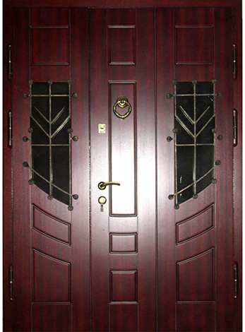 Входная металлическая дверь с порошковым покрытием стеклом и ковкой в частный дом №27
