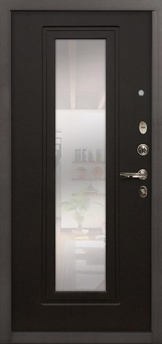 Дизайнерская современная дверь для дома №7 станет ярким акцентом вашего интерьера. Она идеально подходит для установки в частных домах, квартирах или офисах, придавая помещению стиль и современный шарм. Внешняя отделка с молоточковым напылением придает двери устойчивость к механическим повреждениям и атмосферным воздействиям, сохраняя её внешний вид на долгое время. Внутреннее покрытие из МДФ добавляет прочности и долговечности. Дополняет дизайн зеркало, которое не только украшает дверь, но и визуально расширяет пространство. Конструкция с металлическим каркасом и листом металла толщиной 2 мм обеспечивает высокую надежность, а профильные трубы усиливают жесткость полотна. Два контура уплотнителей защищают от холода и сквозняков, обеспечивая дополнительный комфорт. Дизайнерская современная дверь для дома №7 от производителя: быстрое изготовление и монтаж в Хотьково, индивидуальные размеры, широкий выбор материалов и фурнитуры, официальная гарантия до 10 лет.